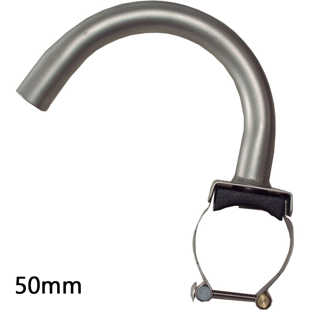 Em aço inox e abraçadeira soldada para girar.